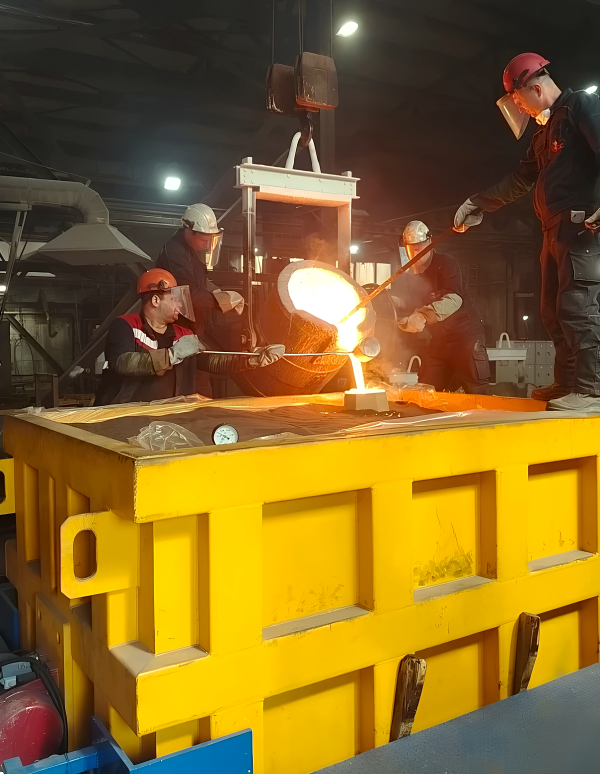 However, times change, and so do demands. In 2025, aiming to expand its product range and increase production volumes, ChugunSpetsStroy faced the need to master pipelines with diameters of 1 metre and 1.2 metres. The solution was to add a third, truly gigantic flask to the existing line — measuring 2.5 × 1.7 × 2.4 metres.
